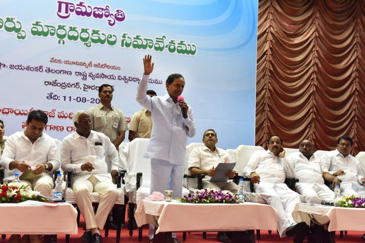 Chief Minister K.Chandrashekhar Rao addressing in Gramajyothi meeting at Prof.Jayashankar Agriculture University, Hyderabad on 11th August 2015.