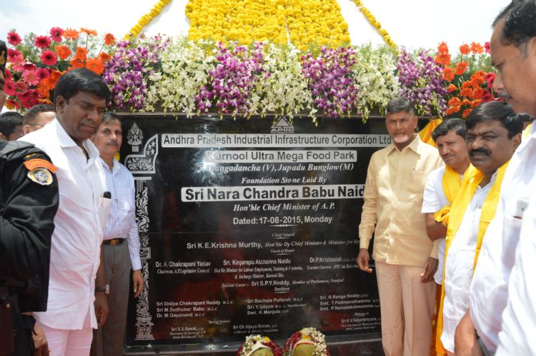 Cheif Minister N.Chandra babu naidu Inauguratiing Kurnool Mega Food Park Pylon at Thangadencha in Jupadu banglaw Mandal Kurnool District on 17th August 2015.
