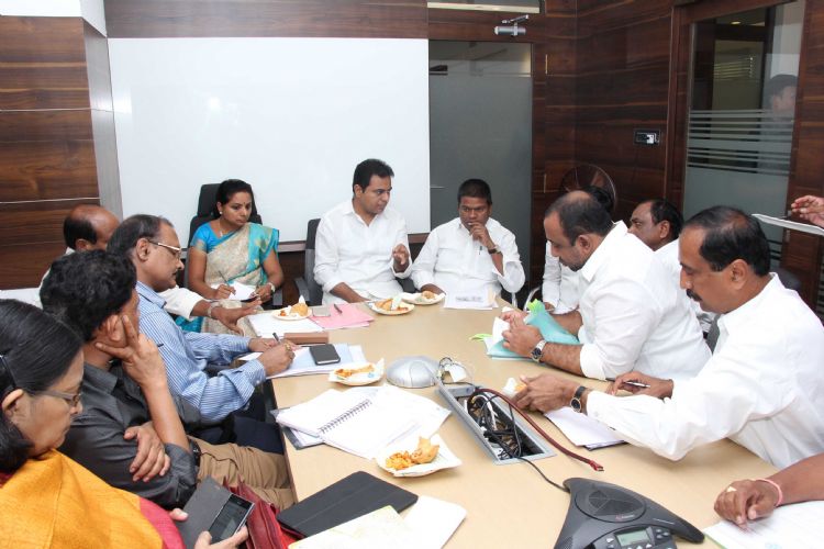 Minister for PR&IT K. Taraka Ramarao meeting with Nizamabad MP Kavitha and representatives of her constituency on 4th September, 2015.