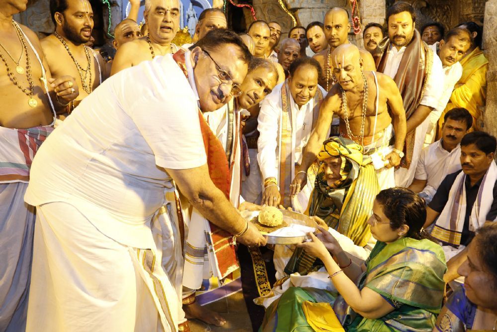 Chief Minister of Andhra Pradesh, N Chandrababu Naidu, offered new silk clothes to the Lord Venkateswara as a mark of obeisance on behalf of the state government on the day one of Brahmotsavams in Tirumala on Wednesday.