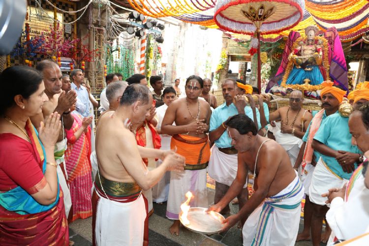 E.S.L.Narasimhan, Governor of Andhra Pradesh accompanied by his wife Smt. Nirmala Narasimhan, Ex Governor of West Bengal MK Narayanan offered prayers to lord venkateswara inside Sri Vari Temple on Friday morning.