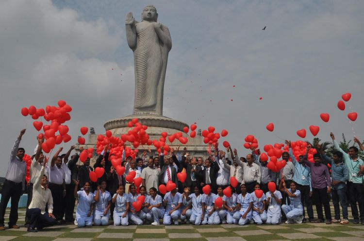 On the occasion of World Heart Day Sr. Cardiologists at Apollo Hospitals commemorated the day by releasing balloons representing “Freedom From Heart Disease” at the iconic Buddha Statue at Hussain Sagar.