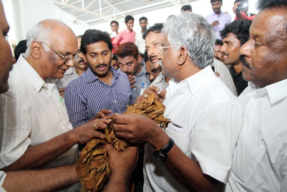 YS Jagan Mohan Reddy consoling the family members of tobacco farmers who committed suicide in Prakasham District and addressing the public at tobacco auction center in Tanguturu on 1st October 2015.