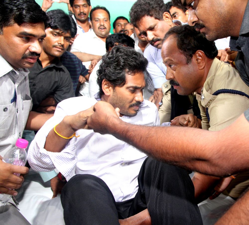 Police foiled YSR Congress party president and opposition leader Y.S. Jaganmohan Reddy's fast early on Tuesday by shifting him to a hospital, where he was forcibly administered fluids.