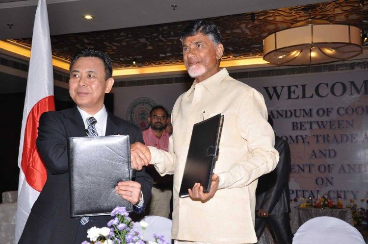 Narendra Modi Prime Minister of India seen Laying foundation stone for the New Capital City (Amaravati) of Andhra Pradesh at Uddandurayanupalem, Guntur District. Sri E.S.L. Narasimhan Governor, N.Chandrababu Naidu Chief Minister of AP & K.Chandrasekhar Rao Chief Minister of Telangana and other Dignitaries are also seen