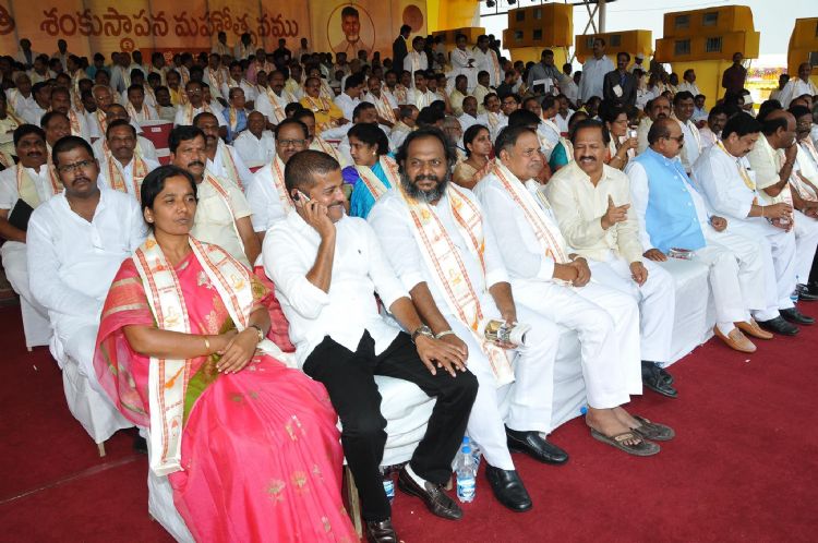 Narendra Modi Prime Minister of India seen Laying foundation stone for the New Capital City (Amaravati) of Andhra Pradesh at Uddandurayanupalem, Guntur District. Sri E.S.L. Narasimhan Governor, N.Chandrababu Naidu Chief Minister of AP & K.Chandrasekhar Rao Chief Minister of Telangana and other Dignitaries are also seen