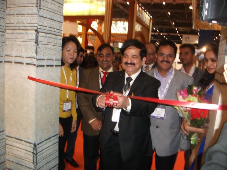 Vinod Zutshi, Secretary, Ministry of Tourism, Government of India inaugurating Telangana Tourism Stall No. IN 180 at World Travel Market 2015 at London on 2nd Novermber 2015.
