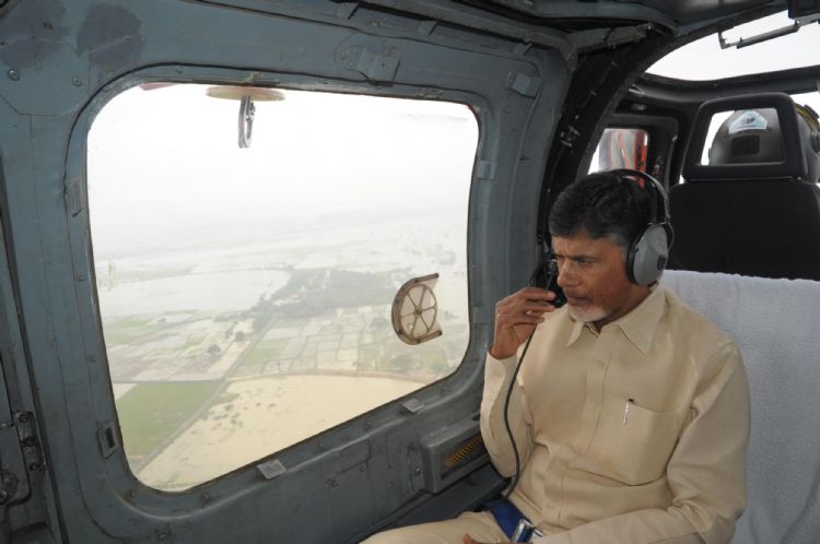 Andhra Pradesh Chief Minister N. Chandrababu Naidu arial survey on flood effected areas in Nellore, Chittoor, Kadapa on 18th November 2015.