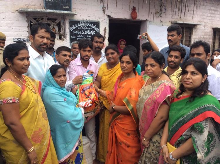 Civil Supplies Minister Smt Paritala Sunitha distributing commodities in flood effected areas in Nellore District on 21st November 2015.