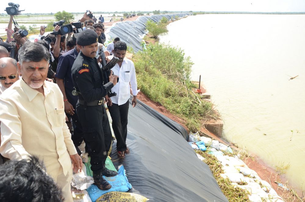 Andhra Pradesh Chief Minister N. Chandrababu Naidu inspecting the flood effected areas in Nellore District on 21st November 2015.