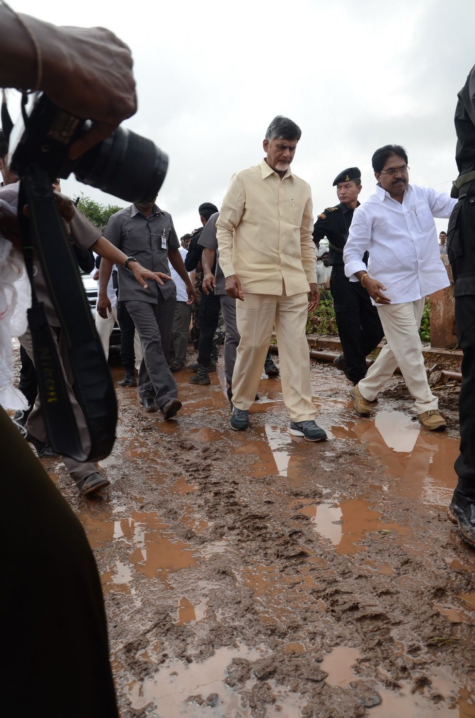 Andhra Pradesh Chief Minister N. Chandrababu Naidu inspecting the flood effected areas in Nellore District on 21st November 2015.
