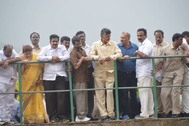 Andhra Pradesh CM Chandrababu Naidu released water from Somasila to Kandaleru Reservoir on Sunday and held a review meeting with officials from the irrigation department on barrage works.