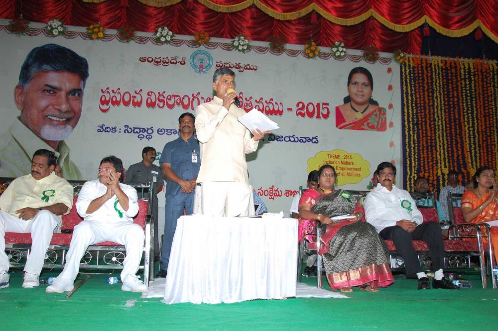 Chief Minister of Andhra Pradesh N.Chandrababu Naidu participated in World Disabled day Celebrations at Vijayawada on 3rd December 2015.