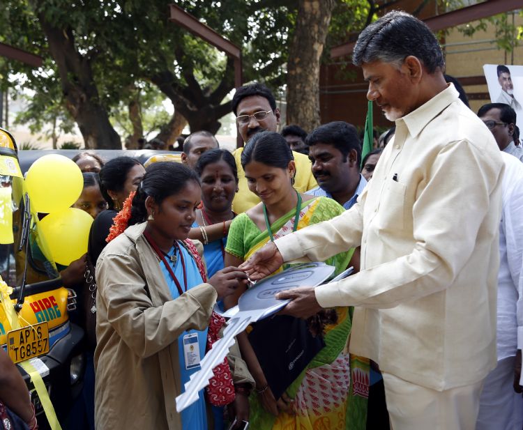 Andhra Pradesh Chief Minister N. Chandrababu Naidu Flagged off She Auto Service at Vijayawada on 4th December 2015.