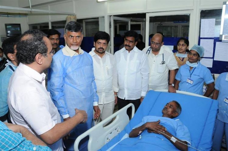 Andhra Pradesh Chief Minister N. Chandrababu Naidu today visited Hospitals where victims who consumed spurious liquor yesterday in Krishnalanka are undergoing treatment. 5 people died and 20 were admitted in serious condition due to consumption of contaminated liquor in Krishnalanka, Vijayawada.