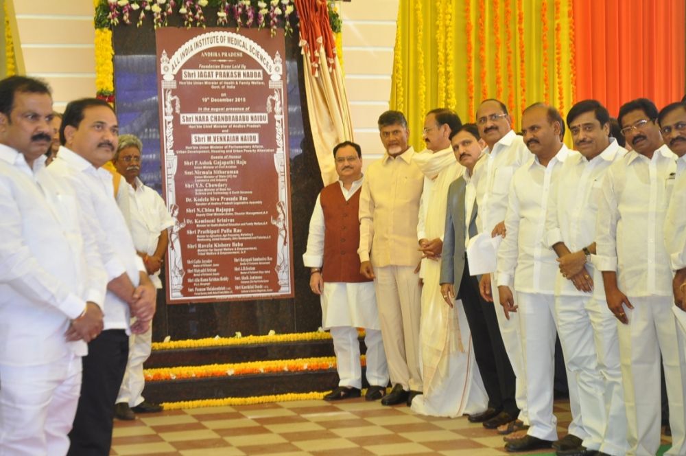 All India Institute of Medical Sciences Foundation Laying Ceremony at Mangalagiri on 19th December 2015. Andhra Pradesh CM Chandrababu Naidu, Union Minister M. Venkaiah Naidu, Health Minister Srinivas, other Ministers and MLAs participated in this Foundation Ceremony.