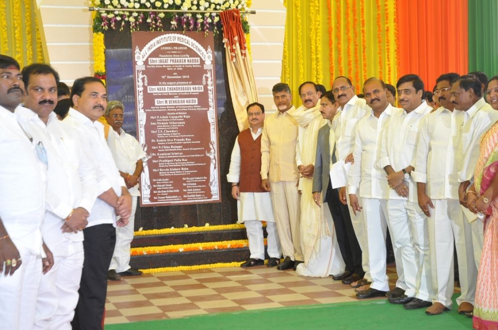 All India Institute of Medical Sciences Foundation Laying Ceremony at Mangalagiri on 19th December 2015. Andhra Pradesh CM Chandrababu Naidu, Union Minister M. Venkaiah Naidu, Health Minister Srinivas, other Ministers and MLAs participated in this Foundation Ceremony.