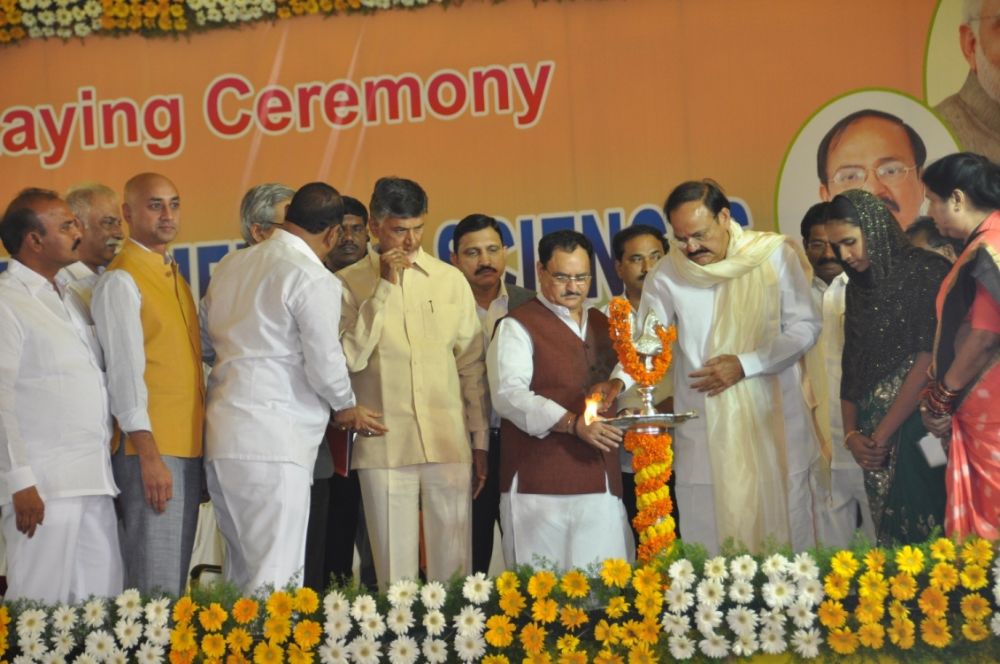 All India Institute of Medical Sciences Foundation Laying Ceremony at Mangalagiri on 19th December 2015. Andhra Pradesh CM Chandrababu Naidu, Union Minister M. Venkaiah Naidu, Health Minister Srinivas, other Ministers and MLAs participated in this Foundation Ceremony.