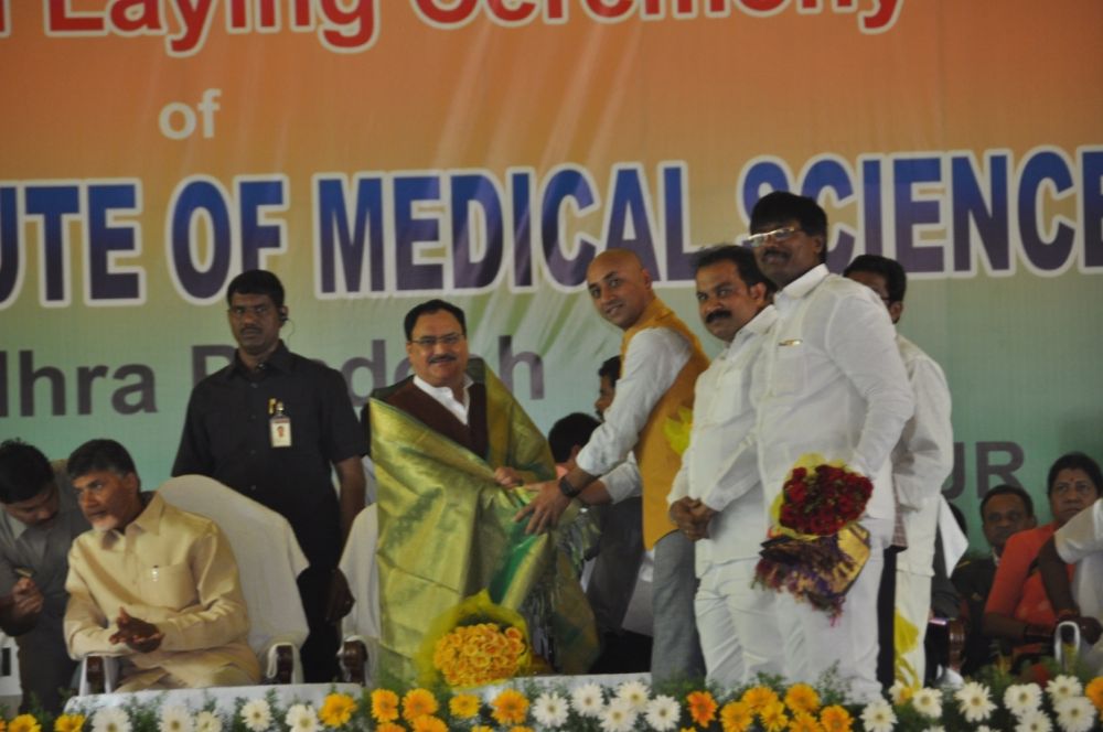 All India Institute of Medical Sciences Foundation Laying Ceremony at Mangalagiri on 19th December 2015. Andhra Pradesh CM Chandrababu Naidu, Union Minister M. Venkaiah Naidu, Health Minister Srinivas, other Ministers and MLAs participated in this Foundation Ceremony.