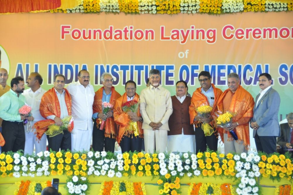 All India Institute of Medical Sciences Foundation Laying Ceremony at Mangalagiri on 19th December 2015. Andhra Pradesh CM Chandrababu Naidu, Union Minister M. Venkaiah Naidu, Health Minister Srinivas, other Ministers and MLAs participated in this Foundation Ceremony.