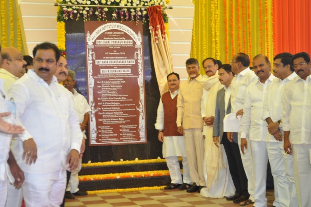 All India Institute of Medical Sciences Foundation Laying Ceremony at Mangalagiri on 19th December 2015. Andhra Pradesh CM Chandrababu Naidu, Union Minister M. Venkaiah Naidu, Health Minister Srinivas, other Ministers and MLAs participated in this Foundation Ceremony.
