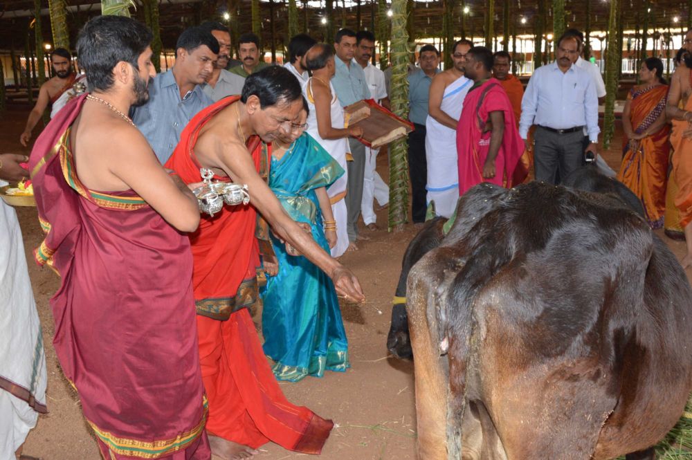Telangana Chief Minister K. Chandrashekar Rao, along with family members, on Monday performed inaugural pooja in connection with 'Chandi Yagnam' being conducted at his farm house in Yerravelli of Medak district.