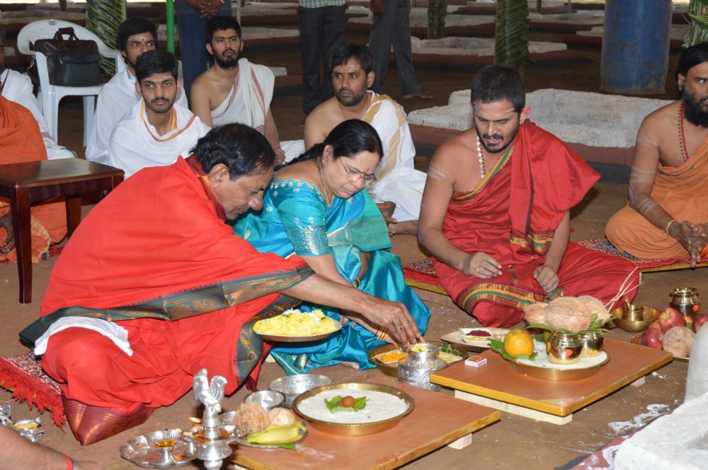Telangana Chief Minister K. Chandrashekar Rao, along with family members, on Monday performed inaugural pooja in connection with 'Chandi Yagnam' being conducted at his farm house in Yerravelli of Medak district.