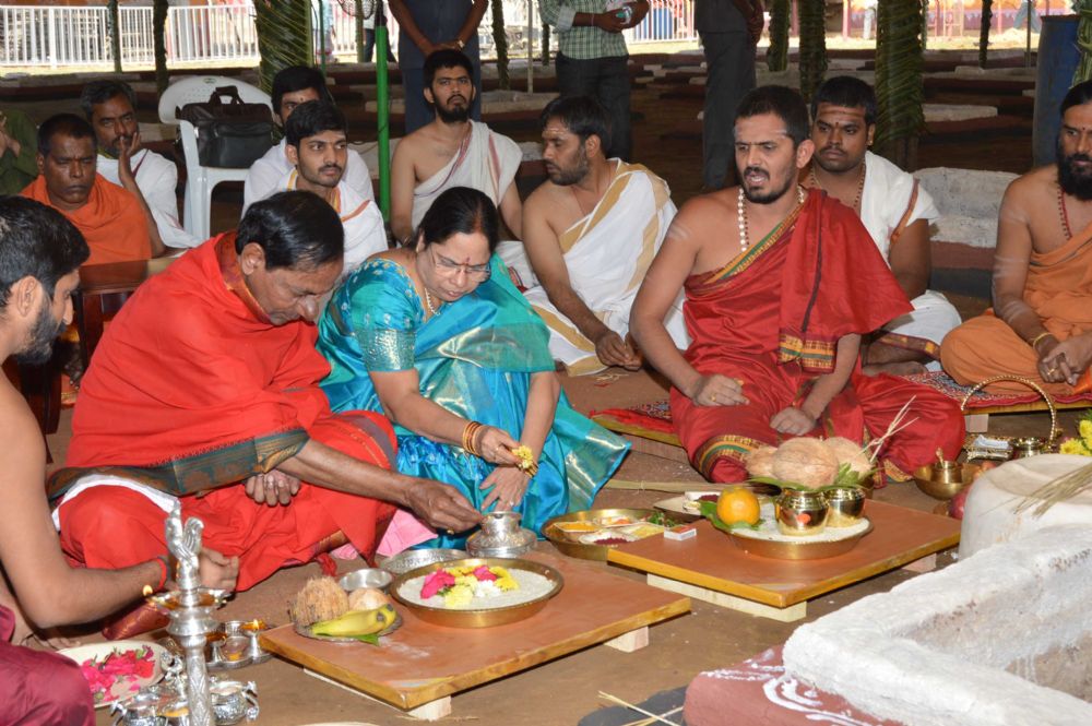 Telangana Chief Minister K. Chandrashekar Rao, along with family members, on Monday performed inaugural pooja in connection with 'Chandi Yagnam' being conducted at his farm house in Yerravelli of Medak district.