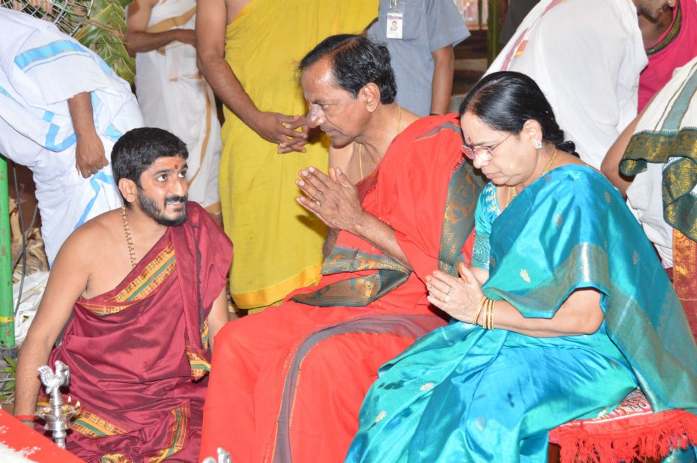 Telangana Chief Minister K. Chandrashekar Rao, along with family members, on Monday performed inaugural pooja in connection with 'Chandi Yagnam' being conducted at his farm house in Yerravelli of Medak district.
