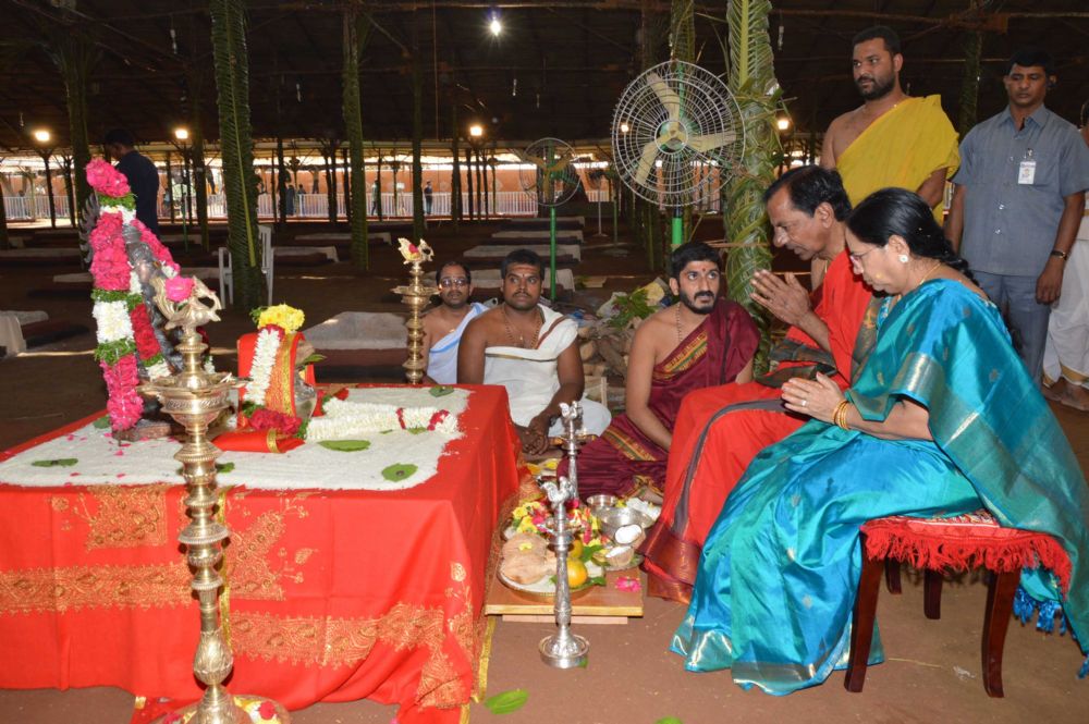 Telangana Chief Minister K. Chandrashekar Rao, along with family members, on Monday performed inaugural pooja in connection with 'Chandi Yagnam' being conducted at his farm house in Yerravelli of Medak district.