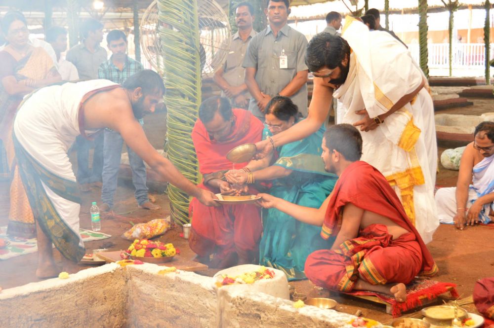 Telangana Chief Minister K. Chandrashekar Rao, along with family members, on Monday performed inaugural pooja in connection with 'Chandi Yagnam' being conducted at his farm house in Yerravelli of Medak district.
