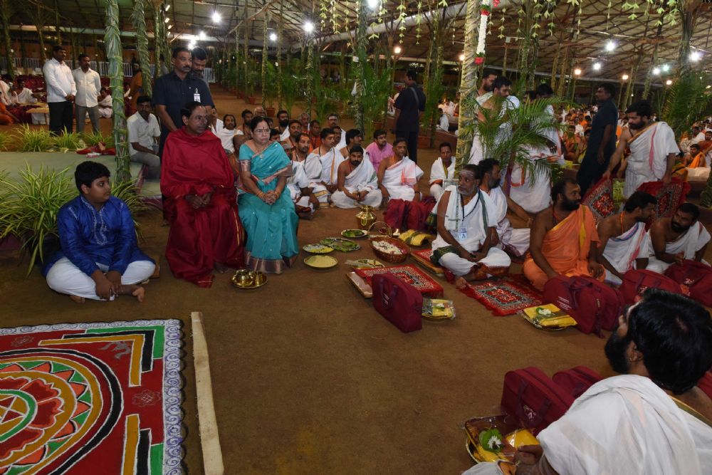 Telangana Chief Minister K. Chandrashekar Rao, along with family members, on Monday performed inaugural pooja in connection with 'Chandi Yagnam' being conducted at his farm house in Yerravelli of Medak district.