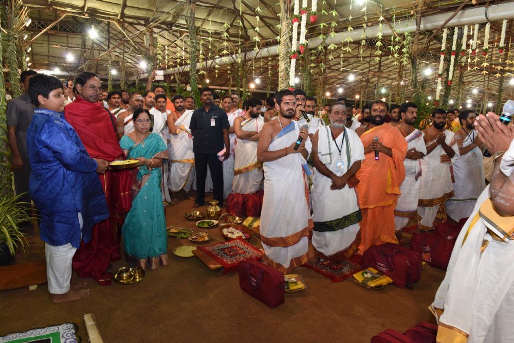 Telangana Chief Minister K. Chandrashekar Rao, along with family members, on Monday performed inaugural pooja in connection with 'Chandi Yagnam' being conducted at his farm house in Yerravelli of Medak district.