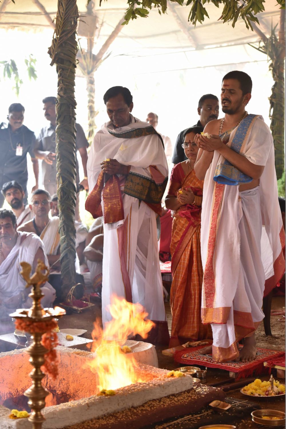 Telangana Chief Minister K. Chandrashekar Rao, along with family members, on Monday performed inaugural pooja in connection with 'Chandi Yagnam' being conducted at his farm house in Yerravelli of Medak district.