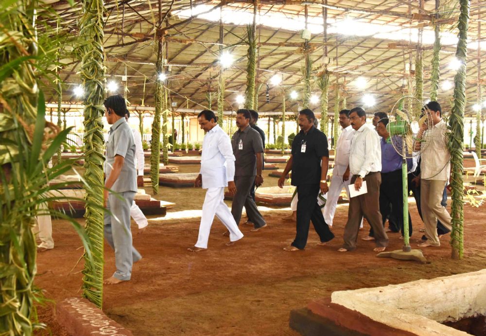 Telangana Chief Minister K. Chandrashekar Rao, along with family members, on Monday performed inaugural pooja in connection with 'Chandi Yagnam' being conducted at his farm house in Yerravelli of Medak district.