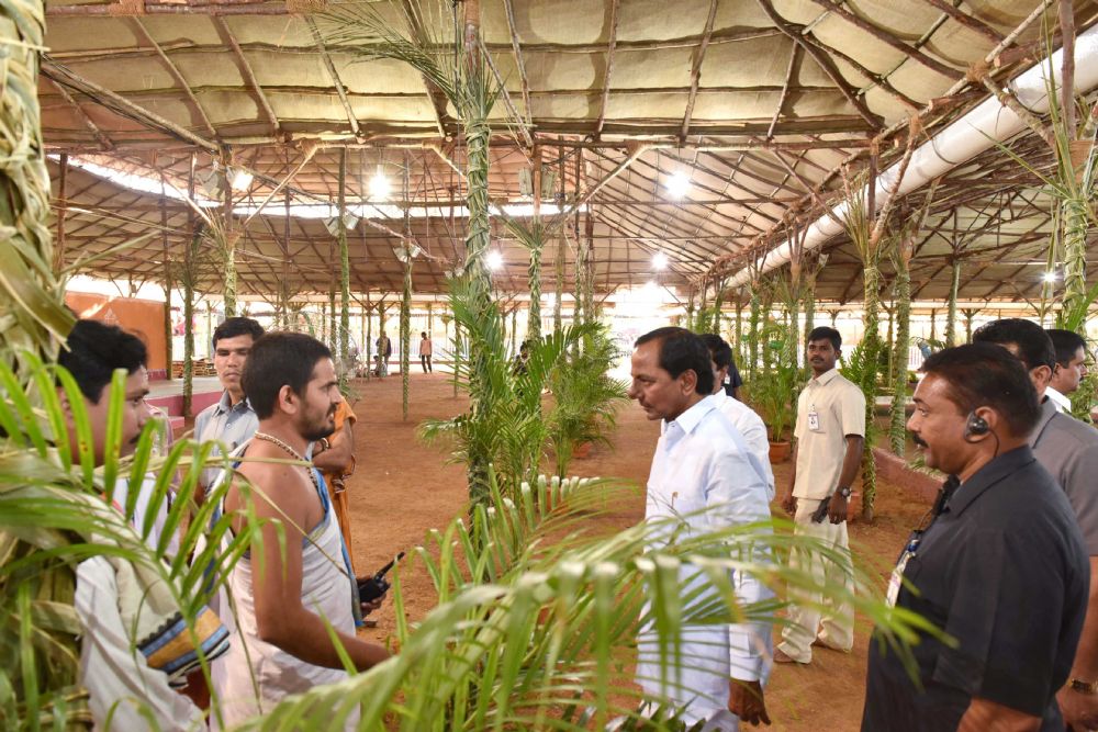 Telangana Chief Minister K. Chandrashekar Rao, along with family members, on Monday performed inaugural pooja in connection with 'Chandi Yagnam' being conducted at his farm house in Yerravelli of Medak district.