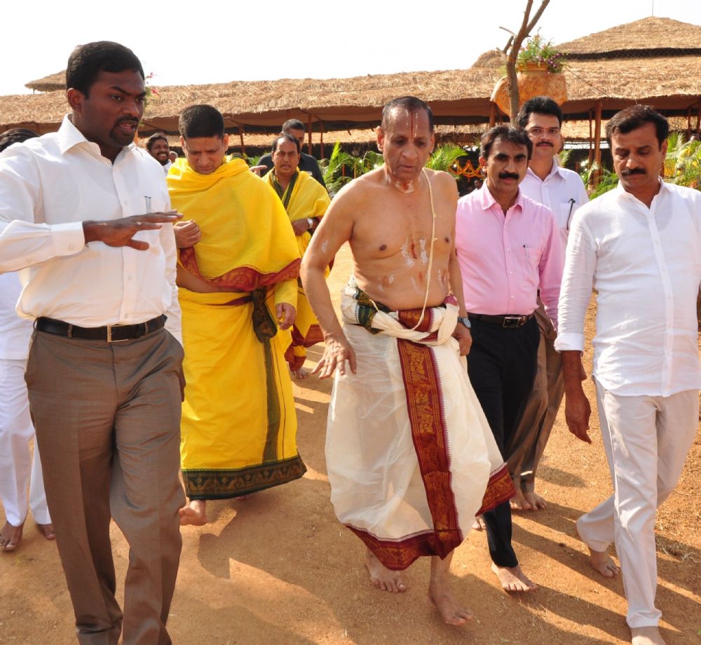 Telangana Chief Minister K. Chandrasekhar Rao and Governor ESL Narasimhan along with family members participated in Ayutha Chandi Maha Yagnam Day 1 pooja at farm house in Yerravelli of Medak district on 23rd December 2015.