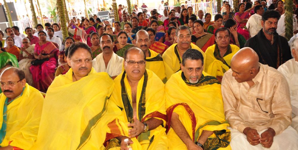 Telangana Chief Minister K. Chandrasekhar Rao and Governor ESL Narasimhan along with family members participated in Ayutha Chandi Maha Yagnam Day 1 pooja at farm house in Yerravelli of Medak district on 23rd December 2015.