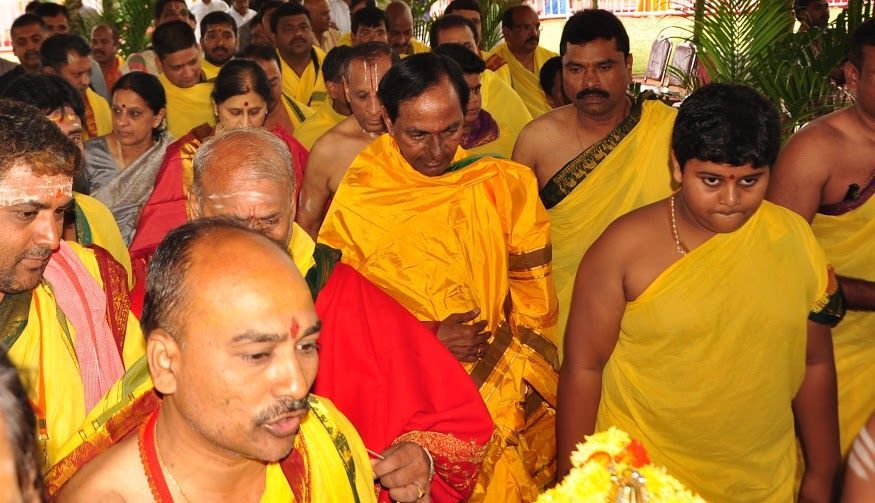Telangana Chief Minister K. Chandrasekhar Rao and Governor ESL Narasimhan along with family members participated in Ayutha Chandi Maha Yagnam Day 1 pooja at farm house in Yerravelli of Medak district on 23rd December 2015.