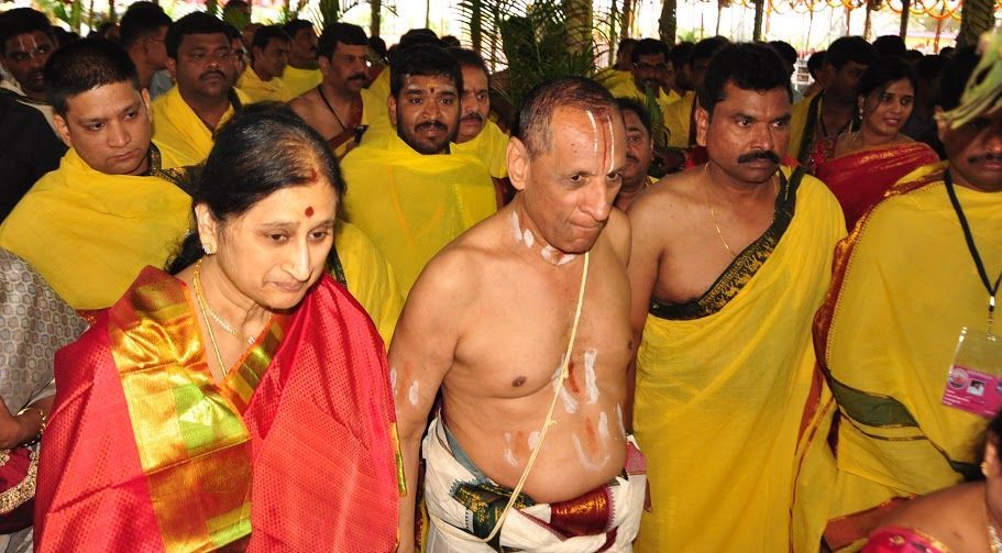 Telangana Chief Minister K. Chandrasekhar Rao and Governor ESL Narasimhan along with family members participated in Ayutha Chandi Maha Yagnam Day 1 pooja at farm house in Yerravelli of Medak district on 23rd December 2015.