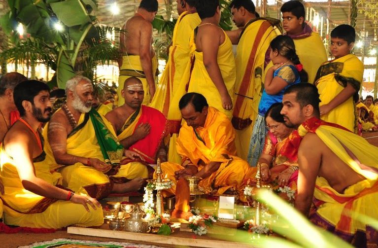 Telangana Chief Minister K. Chandrasekhar Rao and Governor ESL Narasimhan along with family members participated in Ayutha Chandi Maha Yagnam Day 1 pooja at farm house in Yerravelli of Medak district on 23rd December 2015.