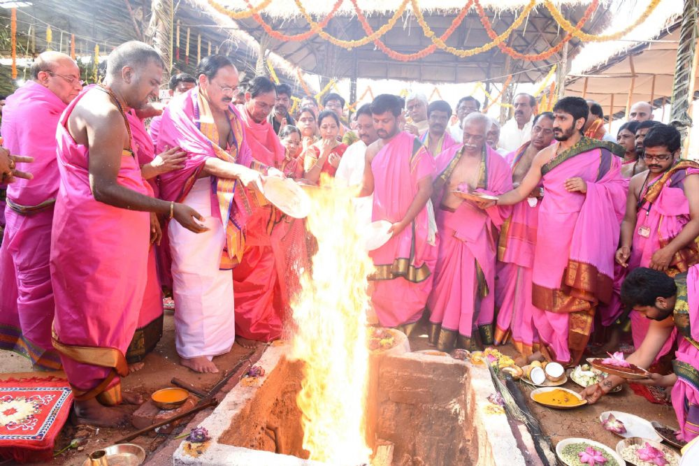 Chief Minister K. Chandrasekhar Rao and Union Ministers M. Venkaiah Naidu, Bandaru Datthathreya and others participated in Ayutha Chandi Yagam on Second Day at Yerravalli in Medak District.