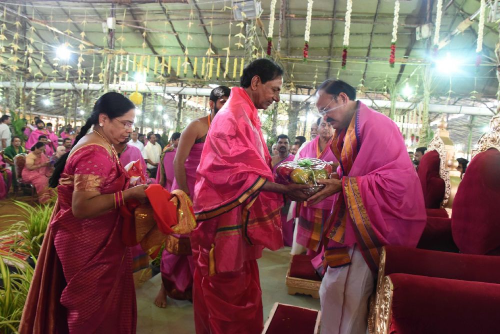 Chief Minister K. Chandrasekhar Rao and Union Ministers M. Venkaiah Naidu, Bandaru Datthathreya and others participated in Ayutha Chandi Yagam on Second Day at Yerravalli in Medak District.