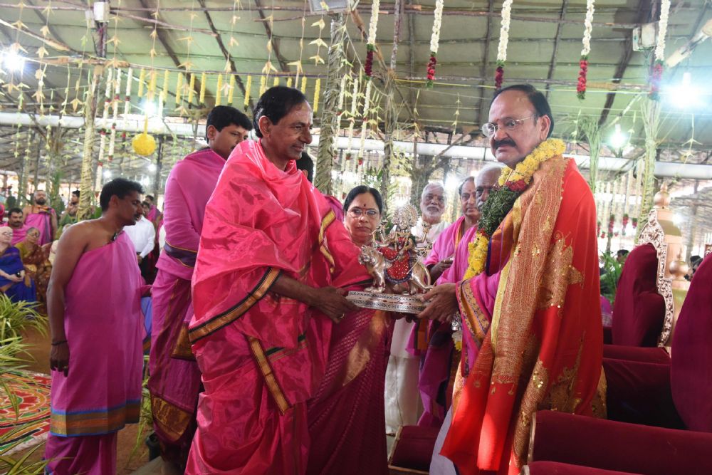 Chief Minister K. Chandrasekhar Rao and Union Ministers M. Venkaiah Naidu, Bandaru Datthathreya and others participated in Ayutha Chandi Yagam on Second Day at Yerravalli in Medak District.