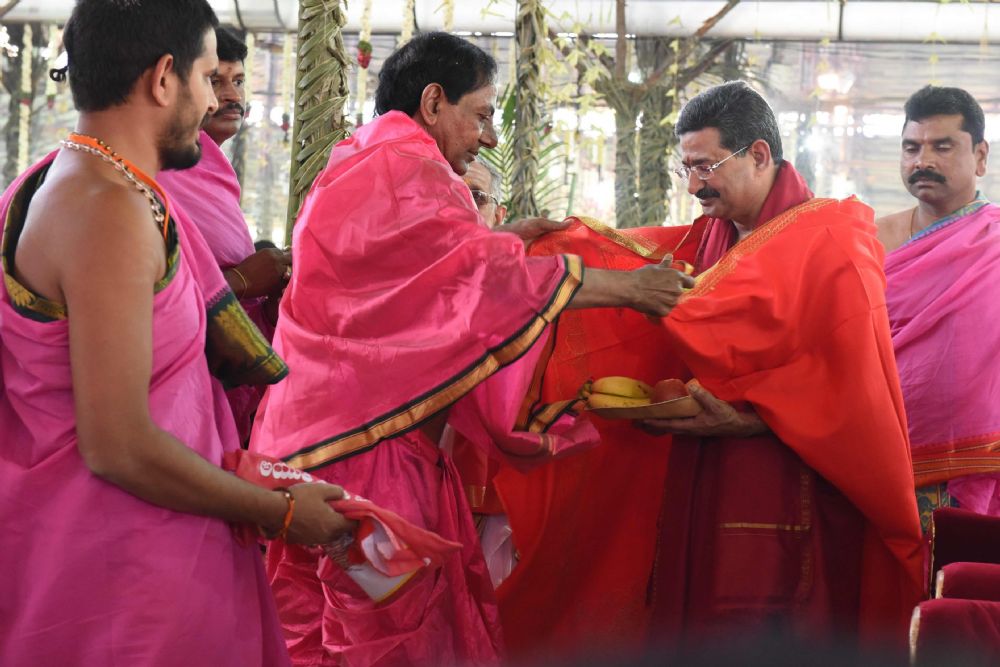 Chief Minister K. Chandrasekhar Rao and Union Ministers M. Venkaiah Naidu, Bandaru Datthathreya and others participated in Ayutha Chandi Yagam on Second Day at Yerravalli in Medak District.