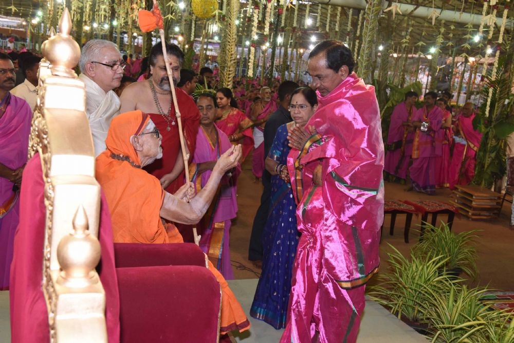 Chief Minister K. Chandrasekhar Rao and Union Ministers M. Venkaiah Naidu, Bandaru Datthathreya and others participated in Ayutha Chandi Yagam on Second Day at Yerravalli in Medak District.