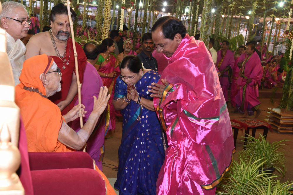 Chief Minister K. Chandrasekhar Rao and Union Ministers M. Venkaiah Naidu, Bandaru Datthathreya and others participated in Ayutha Chandi Yagam on Second Day at Yerravalli in Medak District.
