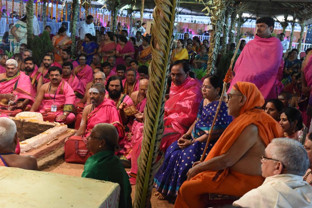 Chief Minister K. Chandrasekhar Rao and Union Ministers M. Venkaiah Naidu, Bandaru Datthathreya and others participated in Ayutha Chandi Yagam on Second Day at Yerravalli in Medak District.