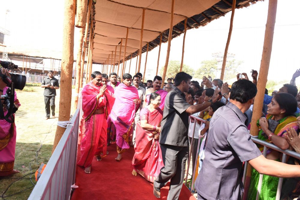 Chief Minister K. Chandrasekhar Rao and Union Ministers M. Venkaiah Naidu, Bandaru Datthathreya and others participated in Ayutha Chandi Yagam on Second Day at Yerravalli in Medak District.