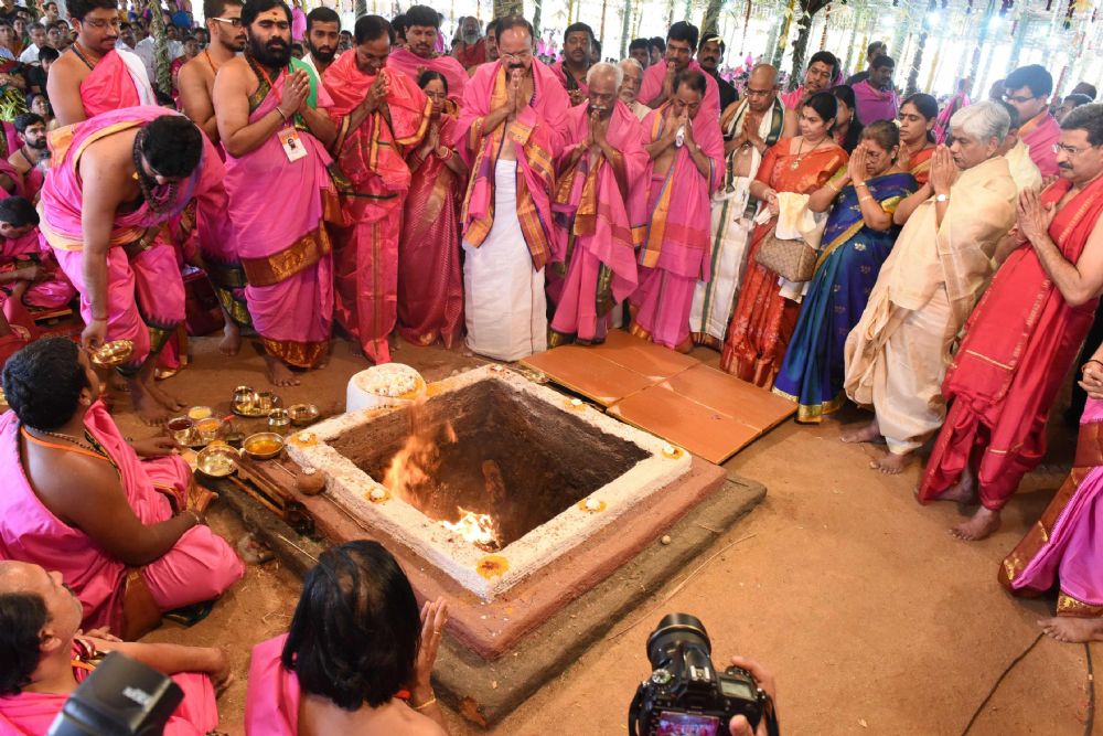 Chief Minister K. Chandrasekhar Rao and Union Ministers M. Venkaiah Naidu, Bandaru Datthathreya and others participated in Ayutha Chandi Yagam on Second Day at Yerravalli in Medak District.